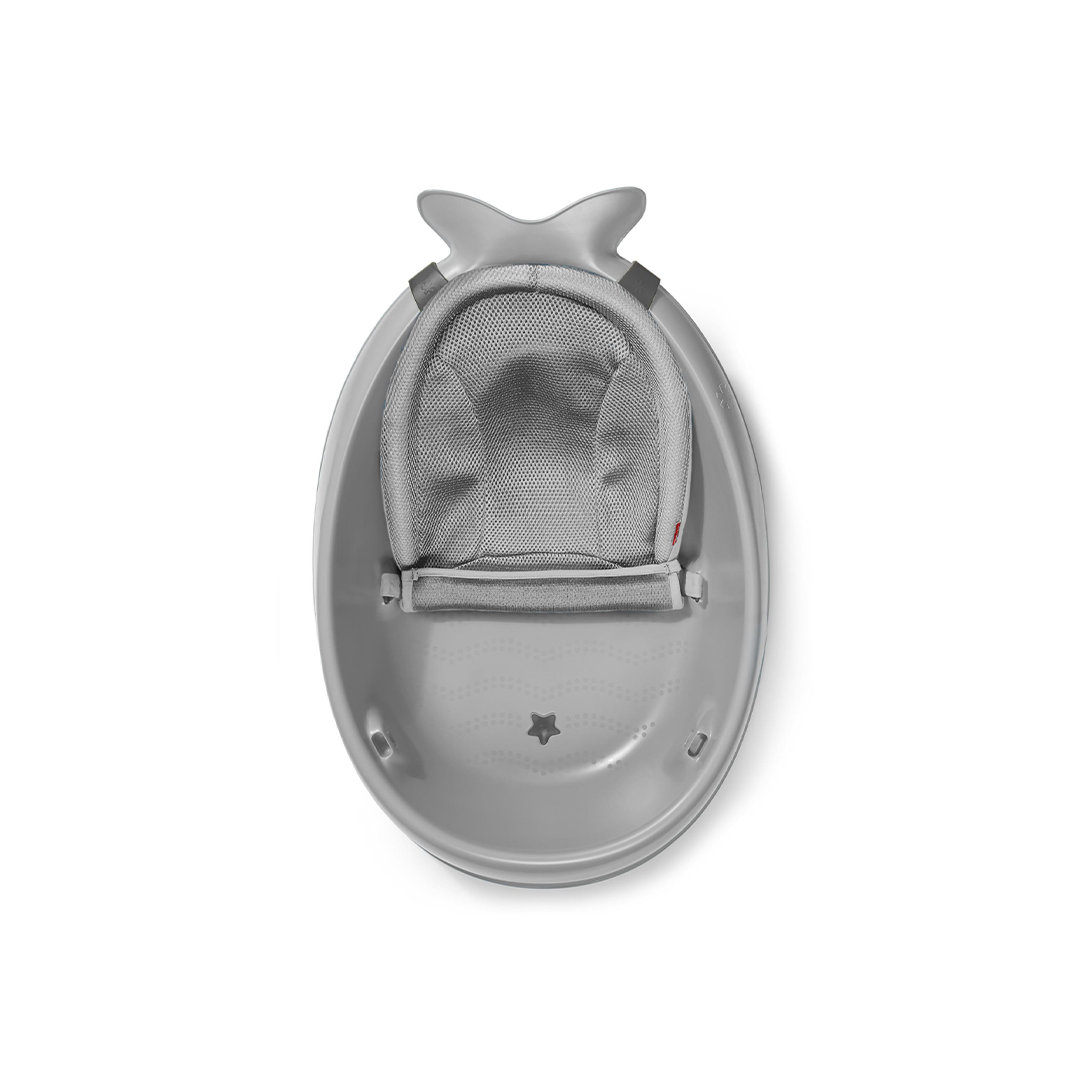 Nossa alegre banheira Moby em forma de baleia cresce com o bebê em três estágios e oferece suporte Smart Sling ™. A funda bloqueia em duas posições ergonômicas: mais alto para suporte de corpo inteiro e mais baixo para suporte sentado. Malha de duas camadas e construção de ponta confortável acomodam o bebê com segurança da cabeça aos pés. As fundas se ajustam a um assento acolchoado que ajuda os bebês a aprenderem a sentar-se confortavelmente. Remova a tipoia quando o bebê tiver dominado a posição sentada e dê banho facilmente na banheira espaçosa - sem protuberâncias de plástico desconfortáveis.